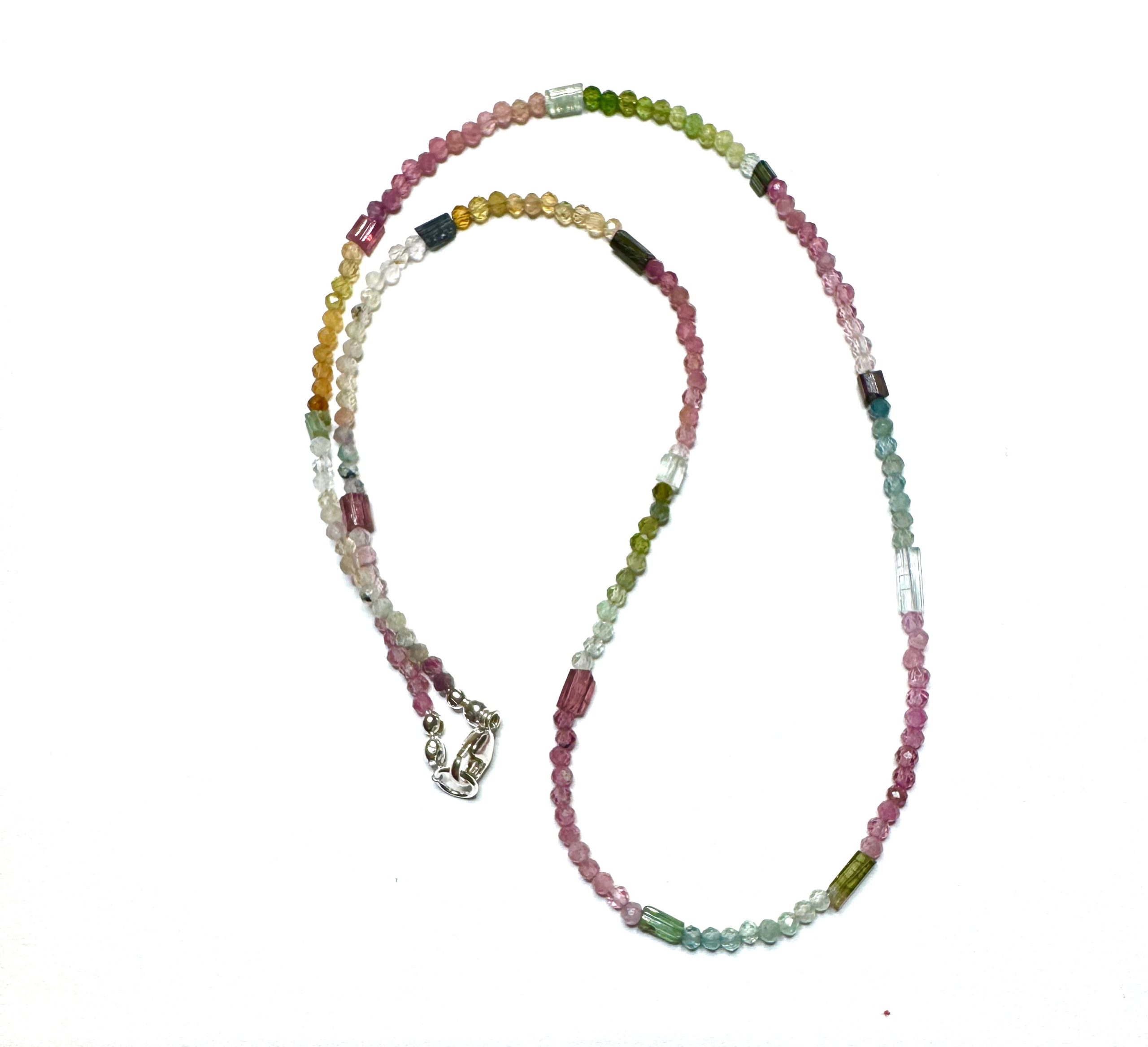 Collar tipo gargantilla elaborado con turmalinas y componentes de plata.