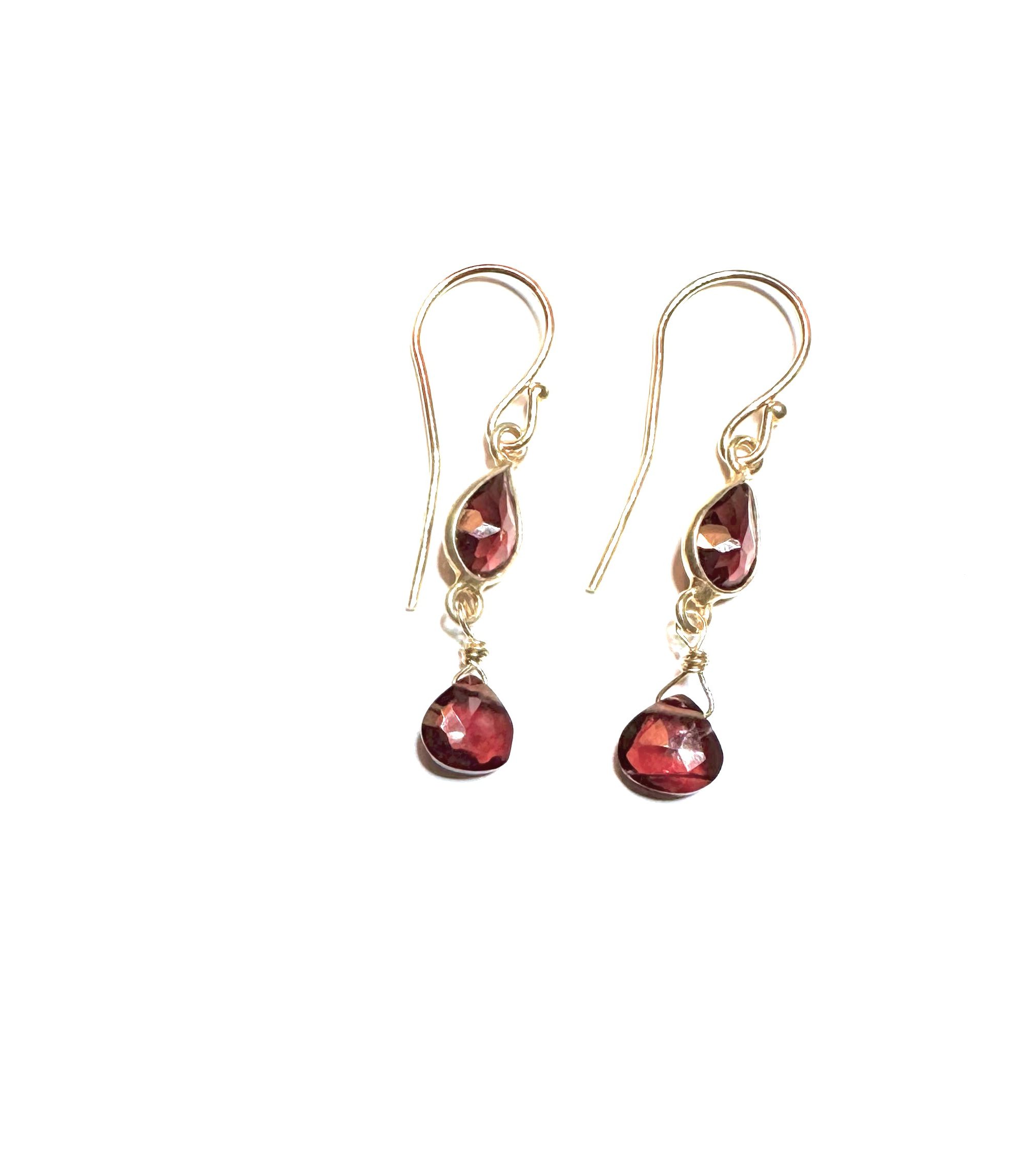 Pendientes elegantes de diseño minimalista, hechos con granates.